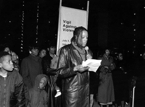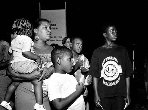 The reason I am here is that it is my people that are getting killed and my community is a wasteland. No, I did not create this situation, but I understand based on all that I have seen in this society contemporarily and historically that I must solve it. No one from the outside has either the will or the skill. Starting next month we are going to escalate the vigils to more direct action. We are going to join with other community groups and begin the process of thoroughly cleaning up our community. Each Saturday before the vigil will be devoted to this part of the rebuilding effort. We hope you all will join us. Let me say this in closing. I know cleaning lots and standing here reading names each first Sunday does not stop the violence, but it begins a process of working together on community problems and thinking about the problem of violence with focus and intensity. Ms. Rosa Parks took her first step by sitting down in the so-called "wrong place" on a bus in Alabama some forty years ago and changed the course of history. Let us continue to take these first steps toward stopping the violence. For me, it beats wringing my hands and calling for someone else to do something.